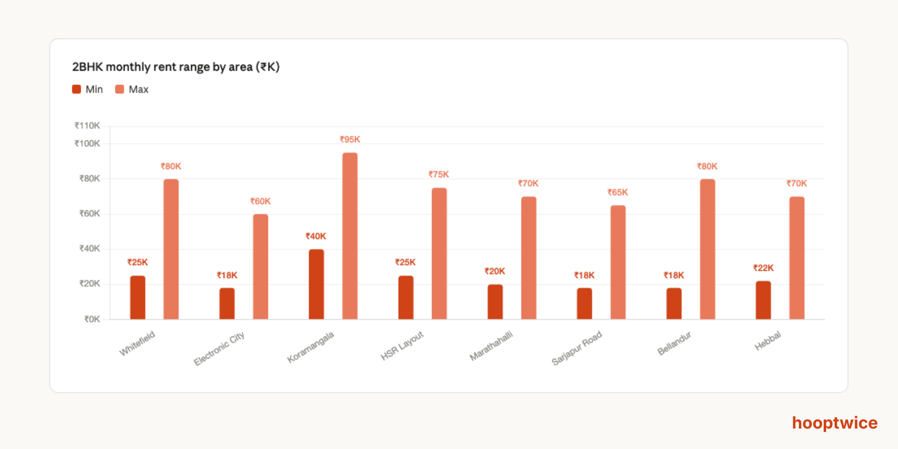 • With rents going up to ₹95K, it clearly stands out as the premium IT and startup hub. Even the minimum rent starts high at ₹40K.